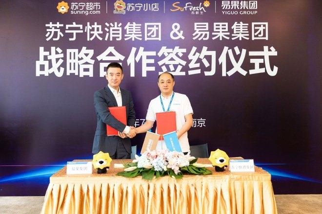 7月26日,在蘇寧集團(tuán)南京總部,易果集團(tuán)與蘇寧快消集團(tuán)正式完成戰(zhàn)略合作簽約。