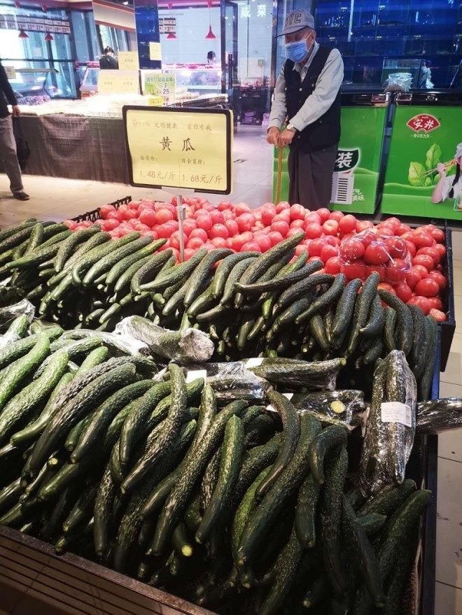 壹公里店鋪內的黃瓜、西紅柿攤位
