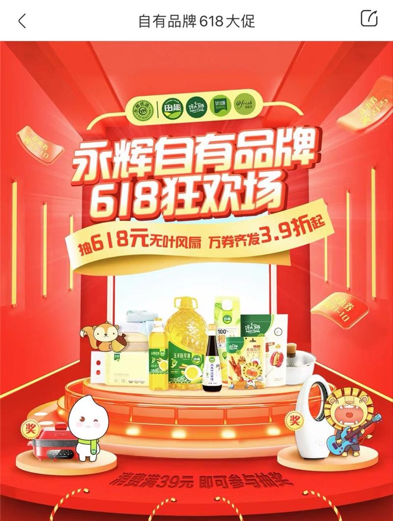 永輝自有品牌也齊獻(xiàn)禮,打造618狂歡場。消費滿39元可抽618元無葉風(fēng)扇。此外,深挖生鮮供應(yīng)鏈優(yōu)勢,永輝生鮮自有品牌永輝農(nóng)場板栗南瓜、秒開椰青、蜜瓜家族、小龍蝦量販裝等商品新鮮上市,合力為消費者獻(xiàn)上一場健康、高品質(zhì)、差異化的購物盛宴。