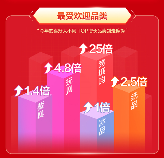 跨境購、玩具、紙品、餐具及冰品成為永輝618最受歡迎的品類,尤其是跨境購業務,增長達25倍。