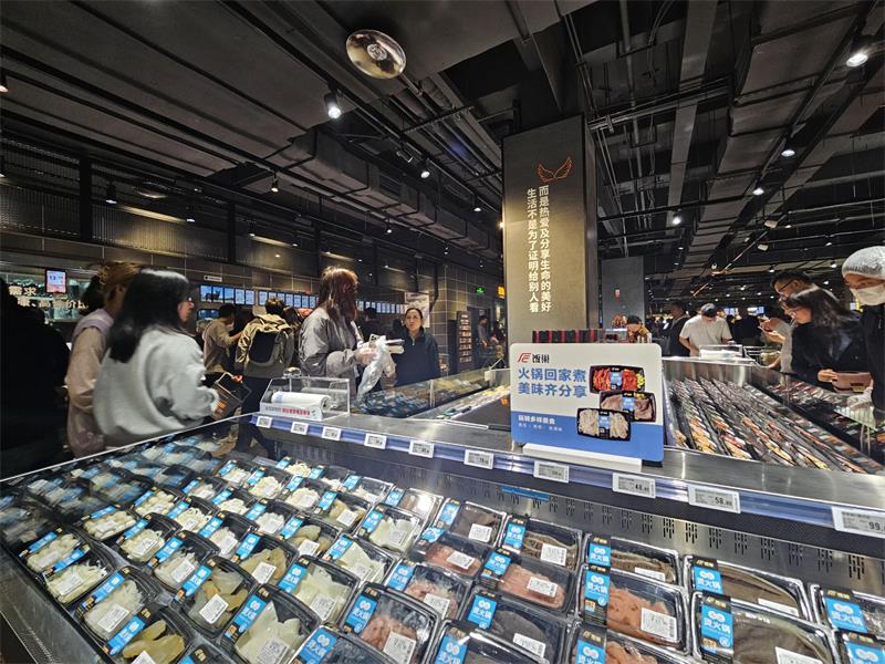 “重慶火鍋萬物皆可燙,燙的是產業(yè)、就業(yè),燙的是對美好生活的向往,每一道食材后面都是一條產業(yè)鏈。我們想的就是把這些產業(yè)鏈聚合到一起,精心篩選質優(yōu)價美的好商品,爭取讓顧客可以一站式購齊一頓火鍋需要的所有食材。”門店相關負責人介紹,火鍋專區(qū)的新場景很受本地顧客青睞,“有的是一家人,有的是年輕的情侶,大家一邊挑選,一邊興高采烈地商量著晚上要怎么在家燙火鍋,是一個很有幸福感的場景,這種模式既是‘火鍋+超市’,又像是‘火鍋+家’。”